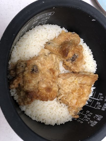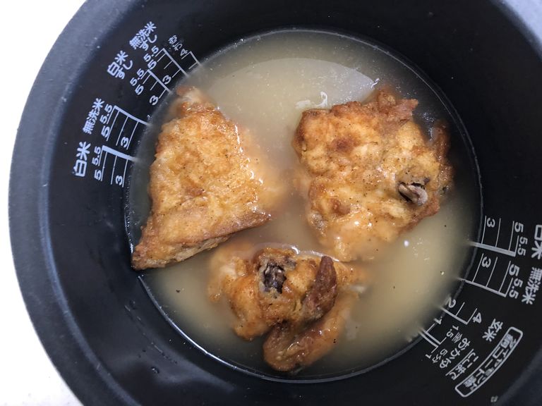 以前ネットで少し話題になったフライドチキンの炊き込みご飯を作ってみました♬
