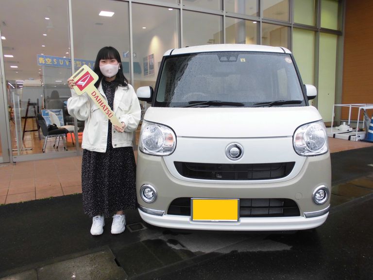 ~お客様の声~カワイイ車と出会えてうれしいです!ムーヴキャンバスおすすめだよ(^^)この度は、ご納車させていただき誠にありがとうございました。今後とも末永いお付き合いよろしくお願いいたします。担当:大方