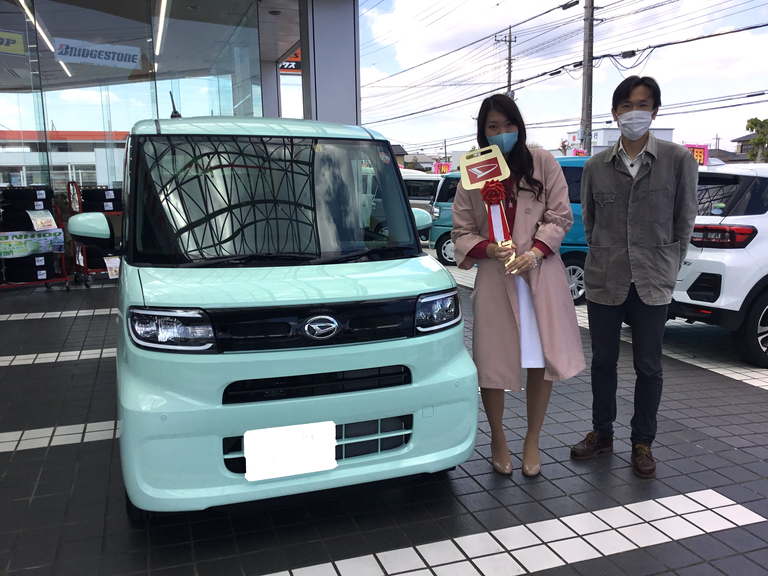 【お客様コメント】色が気に入ってタントを選びました!内装も同じ色でとても可愛いです♪【スタッフコメント】初めてのお車に選んでいただきありがとうございました!この季節にぴったりのお色ですね♪今後ともよろしくお願いいたします! 担当:霜田
