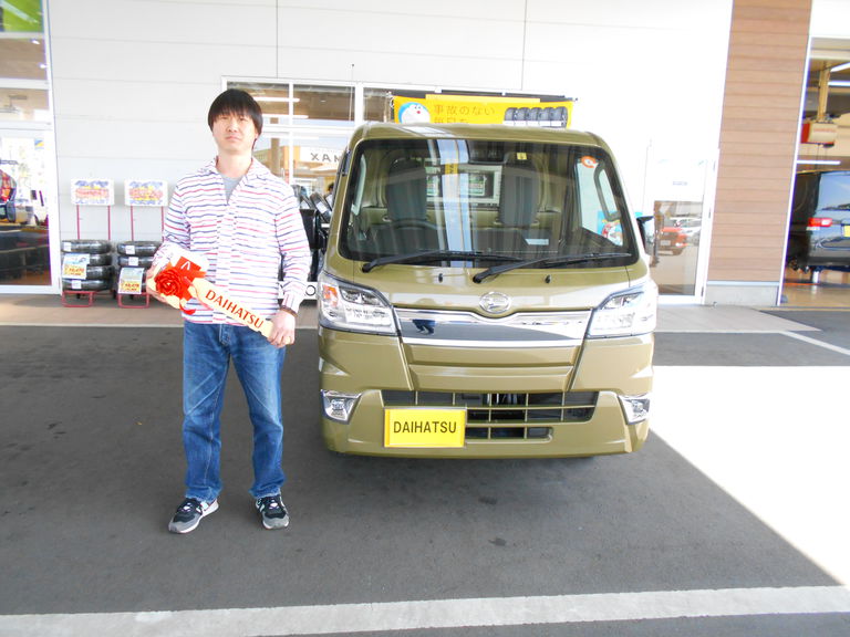 ~お客様の声~納車までていねいな対応ありがとうございます。これからもよろしくお願い致します。担当:石塚この度は ハイゼットトラック をご納車させていただきまして、誠にありがとうございます。安全運転でステキなカーライフをお送りください。これからも末永いお付き合いを宜しくお願い致します。