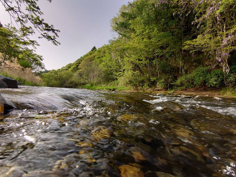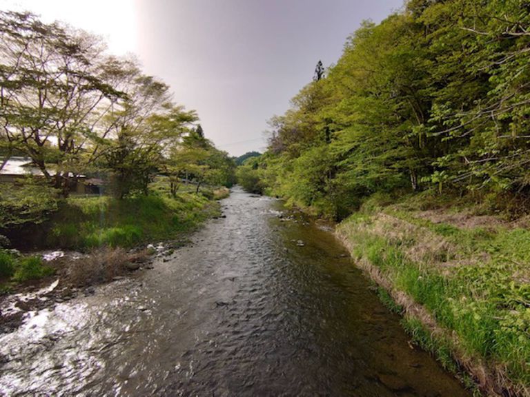 川は名水百選に選定されている八溝川です。かなり上流なので川幅は狭く、水深もあまりありません。