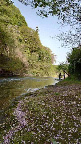 川辺に、散った藤の花びらがまた綺麗で写真に収めてみました(*´ω`*)