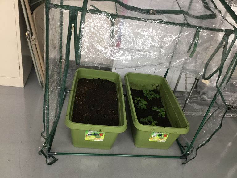 思い起こせば昨年の12月、、、工場裏でゴソゴソ物音がしていました。覗いてみると、店長がプランターに土を入れていました。花🌷でも植えるのかな?と思いましたが花の苗はありません。