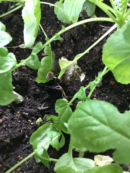 そんなある日、プランターを覗いてみると緑以外の何かが生えていました。