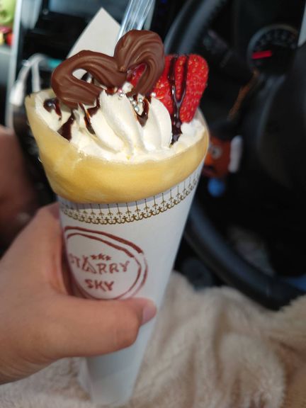 食べ歩きの定番スイーツのクレープ!チョコ×苺もこれまた最強な組み合わせ(`・ω・´)