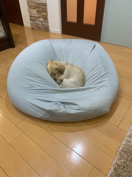 芝刈り後の休憩!と思ったら。新しく買ったソファをワンちゃんに占領されていました。悲しい(;´∀`)