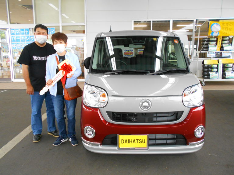 ~お客様の声~9年ぶりのピカピカ新車大切に乗ります担当:石塚この度はステキなムーヴキャンバスをご納車させていただきまして、誠にありがとうございました。たくさんの想い出を作ってください。これからも末永いお付き合いを宜しくお願い致します。