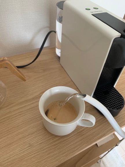 非常に小さい ! シンプルなデザインも可愛い ! 置いているだけでもわたしは幸せです、、、 カプセルタイプのエスプレッソマシンなので、コーヒー豆を買ったり挽いたりしなくても良いし、値段も本格的なものに比べてお手頃なんです〇 場所もとらなくて非常に気に入っています^^