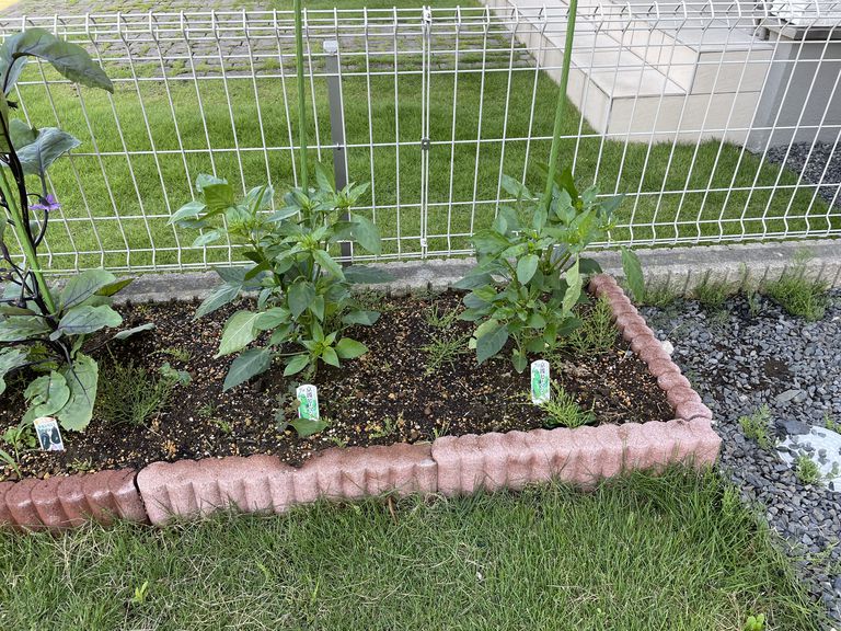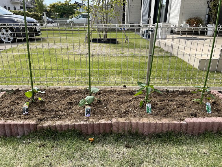 スタッフKです。今年もこの時期がやってきました!ご存じの方もおられると思いますが去年はミニトマトのあいこ🍅の大豊作により勝利となりました。が、大豊作のあまり”あまり使い道がない”とmy wifeの指摘があり今年はナスとピーマンの戦いとなりました。去年も参戦していましたがミニトマトにおされあまり育ちませんでした。今年はピーマン肉詰めと麻婆茄子の連続になるぐらい育ってくれるといいなと思います!4月に植えたころのです!