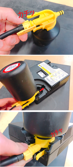まずは組み立てから~ホースをつないで、コンプレッサー本体に接続する~|д゚)