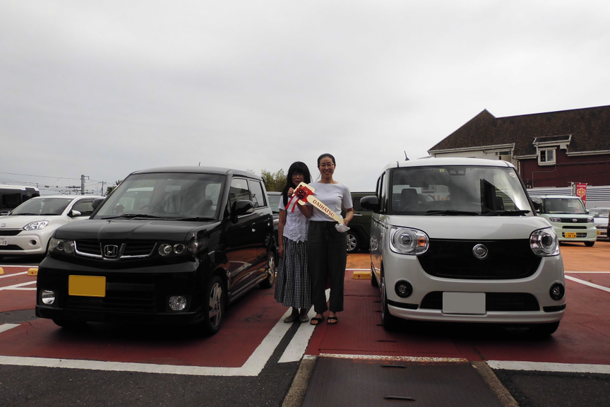 ムーヴキャンバスご納車させていただきました!とてもオシャレでお似合いです!ゼストからのバトンタッチ!これからよろしくお願いいたします! 担当 萩原