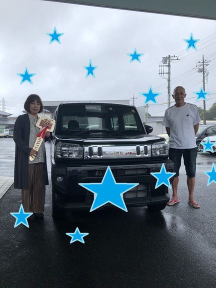 この度はご納車させていただき、誠にありがとうございました♪ブラックのタフトとってもかっこいいです★!!これからも末永いお付き合いをよろしくお願いいたします(*^^*)!担当:平塚