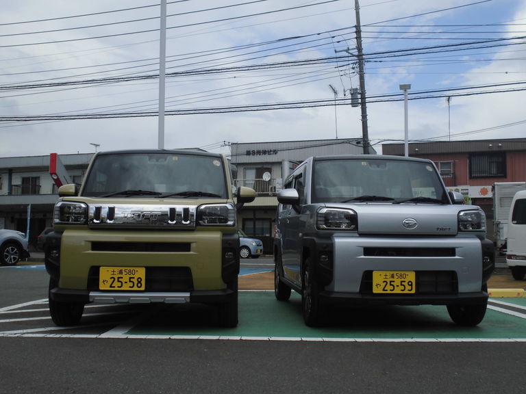 こんにちは。土浦店です!いつもご利用いただき、誠にありがとうございます!今日は、人気車タフトです!!実は、最近新たなグレードできました!その名も・・・”クロム ベンチャー”ちなみに”G” ”Gターボ” どちらも展開してます!標準グレードとクロムベンチャーでは装備も異なります!そこでここから問題です!どこが違うでしょうか???ちなみに標準グレードがシルバーです