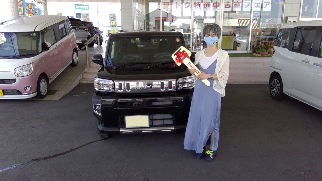 本日、タフトを納車させていただきました。ありがとうございます。ブラックのかっこいいタフトで素敵なカーライフをお過ごしください。今後とも末永く宜しくお願い致します。担当:木島