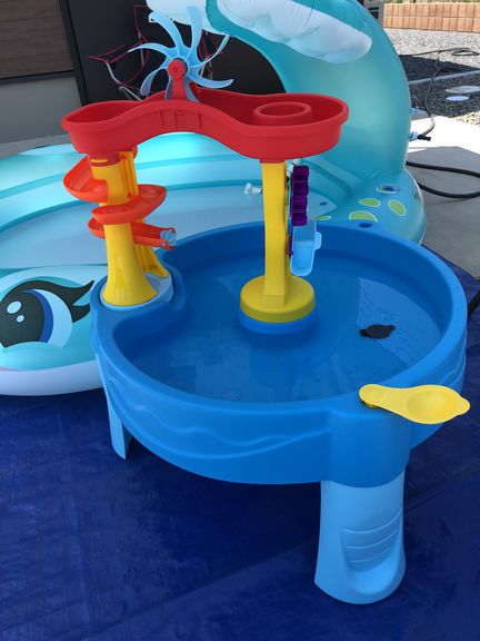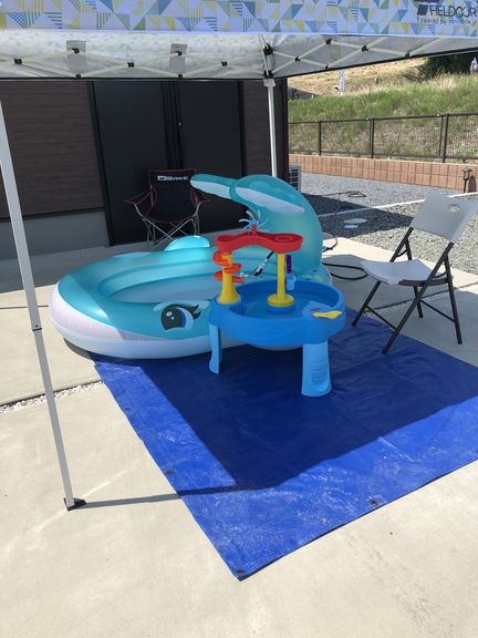 種類の違うプール2つを別日で行い、なにやらコストコで大変人気・品薄というウォーターテーブルなる物をたまたま購入出来たので遊んでみました!