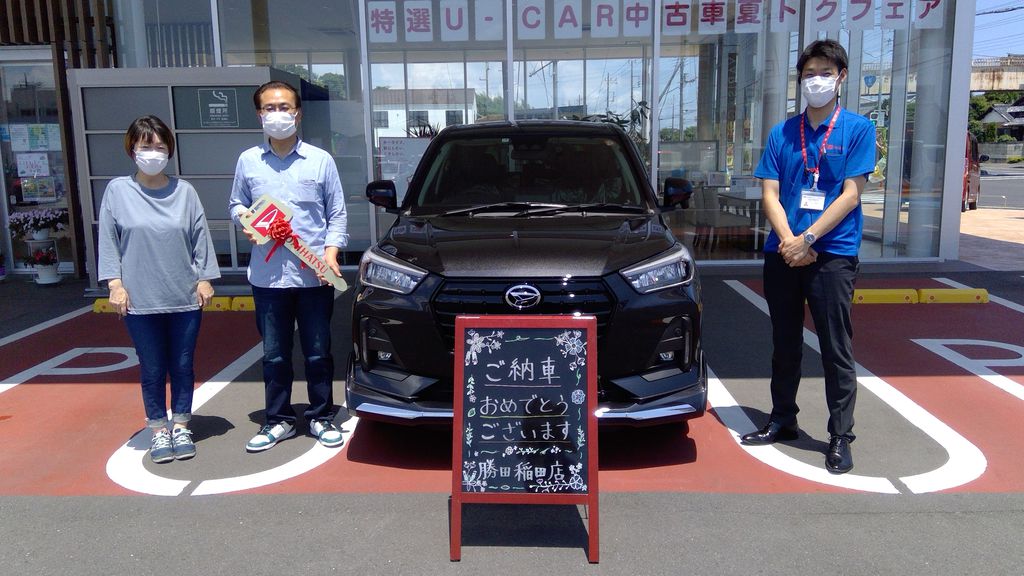お客様の声「この度、2代目の新車購入になりますが購入に辺り担当の方、スタッフの方々には大変お世話になりました。ありがとうございました。末永く愛用していきたいと思います。又、今後とも宜しくお願いいたします。」この度はロッキーのご納車させていただき誠にありがとうございました。メッキパックがついて他とは一味違うスタイルが素敵ですね☆今後とも末永いお付き合いをよろしくお願いいたします。担当 住谷