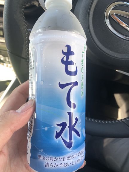 この日は、途中にある「道の駅もてぎ」に立ち寄りました。喉をうるおすため、自販機にいくと「もて水」という、とてもご利益がありそうな水が売っていました。