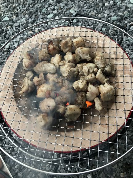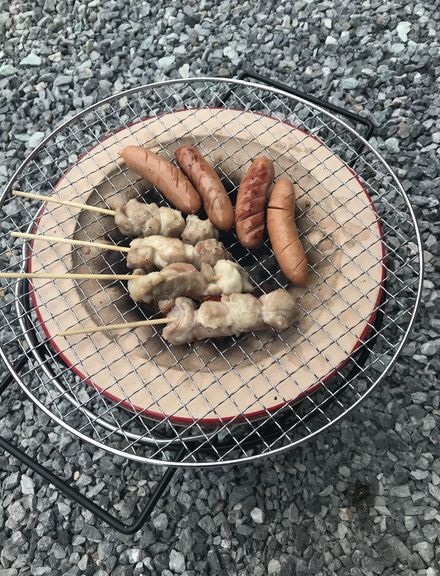 今日は焼き鳥とソーセージにしてみました♪ステーキなどもいいですね!
