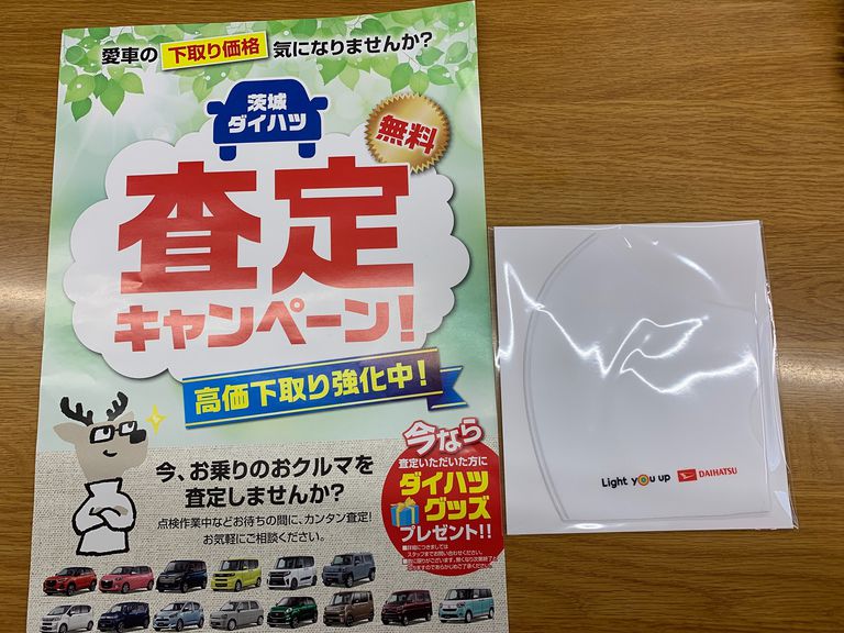 皆様こんにちは!今回ブログ担当のHです♪毎日大変暑い日が続いており夏バテ気味です(._.)今回は下取強化キャンペーンのご案内です!お車の下取価格気になりませんか?点検・車検などでお待ちいただいている間にカンタン無料査定させていただきます!!そして今なら★査定いただいたお客様にダイハツオリジナルマスクプレゼント(*^^*)この機会にぜひ♪