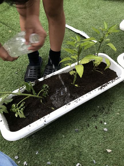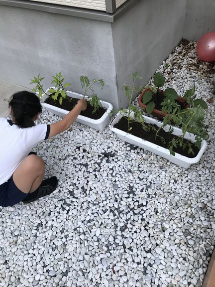 野菜づくりという程ではありませんが、子ども(小学4年)と一緒に鉢植えをしてみました♪