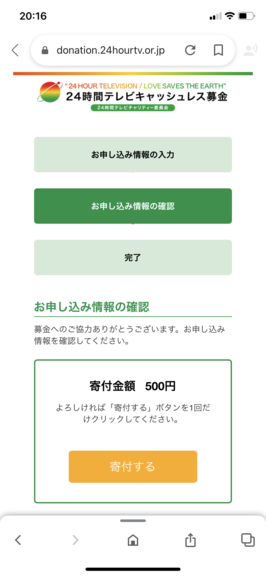 今年はクレジットカードの情報を入力して子供と自分の分で500円だけ募金しました。