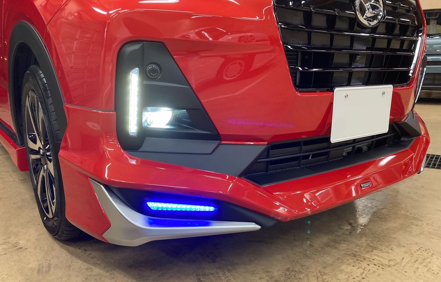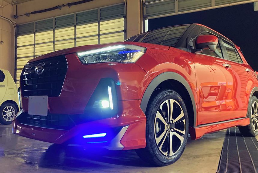 今回はロッキーのモデリスタを紹介します。モデリスタは通常のロッキーとは異なり見た目がとてもスポーティでカッコイイです。フロントにはブルーに光るLEDデイライトが加わりサイドスカートやリヤリヤスポイラー、マフラーカッターなども付けています。