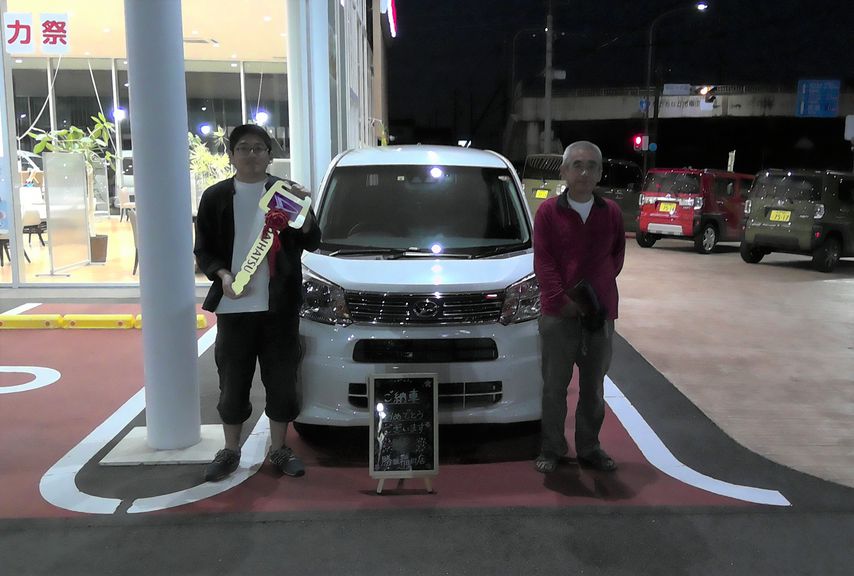 ~お客様の声~沢山乗りたいと思います。この度はご納車させていただきありがとうございました!ムーヴでの運転、楽しんでください(^^)今後とも末永いお付き合いをよろしくお願いいたします。担当 滑川