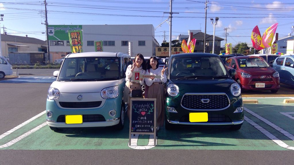 (お客様より)可愛い車で嬉しいです❤大切に乗ります😊✨(担当 鈴木)本日は、ご納車させていただき、ありがとうございます(*^-^*)とっても気に入ってくださって、本当に嬉しいです🎶私も幸せいっっっぱいの気持ちになりました✨これからも末永く、よろしくお願いいたします。
