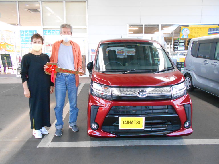 ~お客様の声~気に入った車見つかりました。担当:石塚この度は遠い所、ご納車させていただきまして、誠にありがとうございました。ムーヴ でたくさんの想い出を作ってください。
