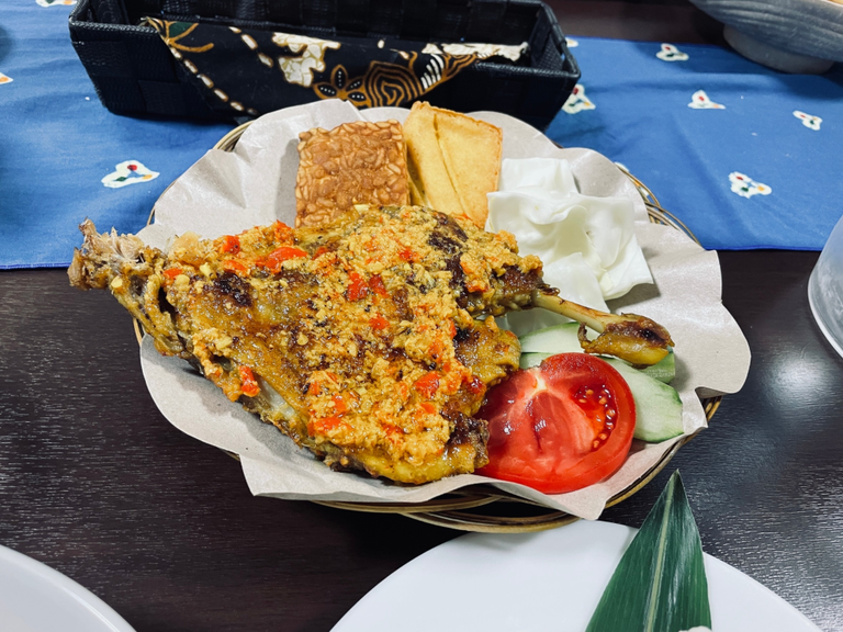 こちらは「アヤム パカル リチャ」(スパイシー焼の鶏肉)です。スパイシーでおいし~