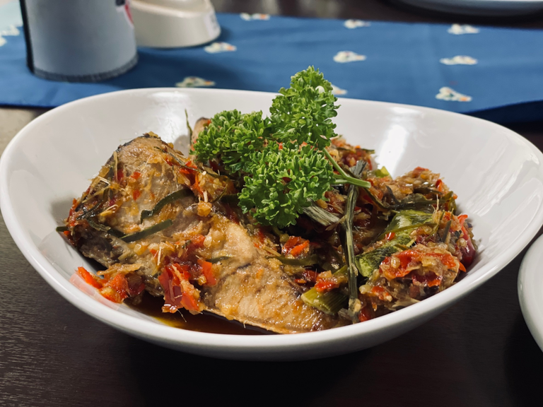 カツオをいろいろな調味料を入れて煮込んだ「チャラカン ウォク ベラガ」デス。お魚好きにはたまりません。