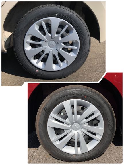 コンパクトカーでも廉価グレードだとやっぱりホイールキャップ。コスパは良いですね。