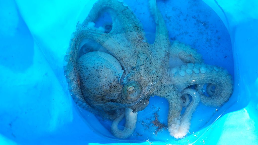 ・・・が思わぬ珍客が釣れました。なんとタコ🐙が細い針糸の先にかかっているではないですか!!