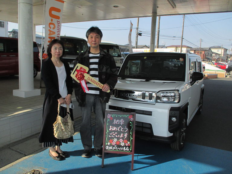 【車種】タフト 【ボディカラー】シャイニングホワイトパール【営業担当より】ブラックパックでかっこよくまとまったタフトがよくお似合いです!これからも末永くよろしくお願いいたします。(菅野)