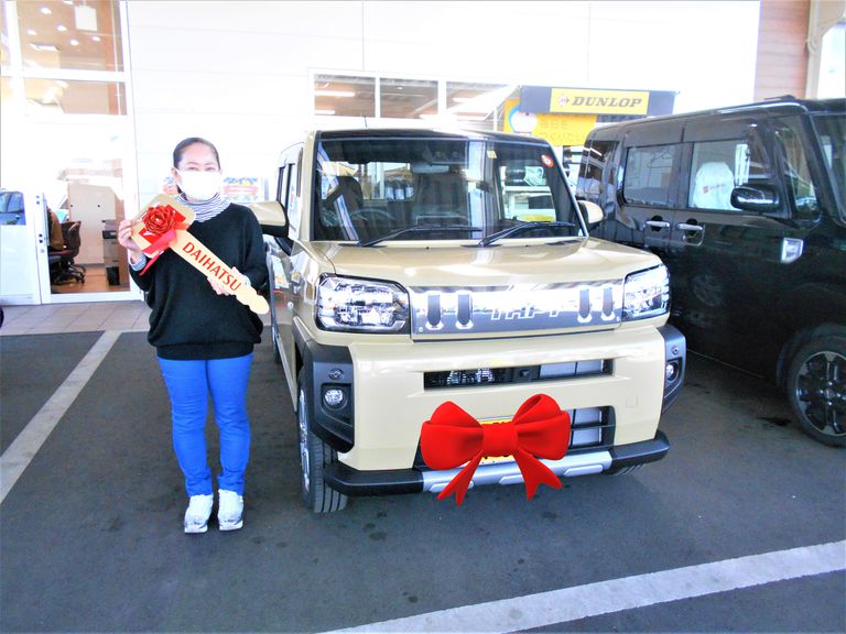 【車種】 タフト 【ボディカラー】 サンドベージュ 【この車で一番最初に行きたい場所は?】 温泉 【お客様からの一言】 思ったより納車が早くうれしかったです。 スタッフ皆さん良く対応していただきありがとうございました。 【営業担当より】 この度はタフトをご納車させていただきまして、 誠にありがとうございました。 新しいお車でたくさんの想い出を作ってください。 これからも末永いお付き合いをよろしくお願いいたします。