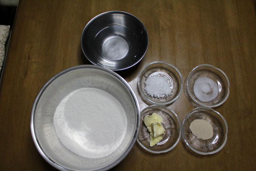 レシピは 強力粉 300g バター 30g 砂糖 30g 塩 2g