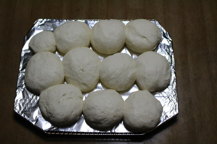 生地を台の上で潰して(ガス抜き)をし 成形をしまたこたつに50分