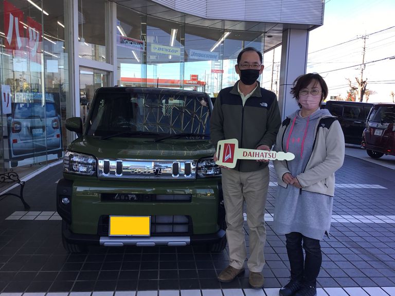 【車種】タフト 【ボディカラー】フォレストカーキメタリック 【この車で一番最初に行きたい場所は?】茨城ダイハツ 石岡店 【お客様からの一言】石岡店 店長 森島様勝田昭和通り店 店長 菊池様勝田昭和通り店 萩谷様大変お世話になりました。 【営業担当より】ご納車させていただき、ありがとうございました。カーキのタフトとてもかっこよいですね!楽しい思い出をたくさん作ってくださいね♪これからも末永いお付き合いをよろしくお願いいたします☺担当:萩谷