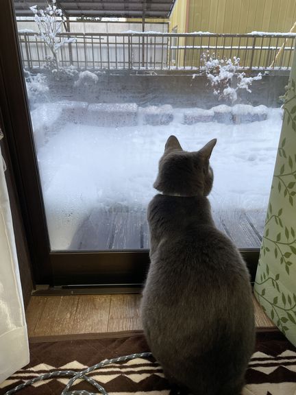 初めて雪を見る我が家のにゃんこ。興味津々のようです(*'ω'*)