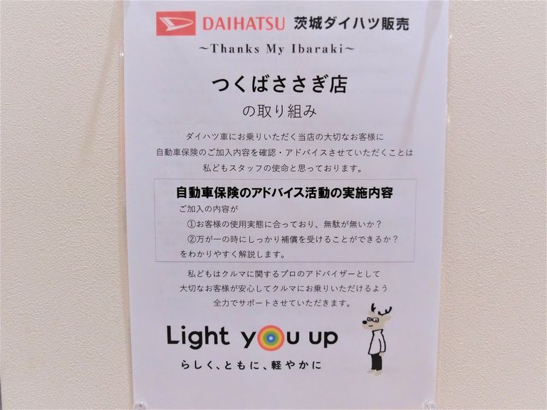 そうならないためにも、ダイハツでは大切なお客様にモレなく、安心・安全な保険に加入して頂きたいと思い、自動車保険のご加入内容を『お客様と一緒に確認』し『お客様に知っていただく』活動を実施しています。