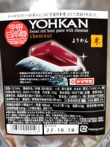 中身は…そのままようかんでした!味は…そのままようかんでした!!今回は気分だけ宇宙旅行を楽しめました!他にも色々種類があるようです。災害対策などにも良いかもしれませんね。ネット通販でも手に入るようなので、皆さんもぜひ!