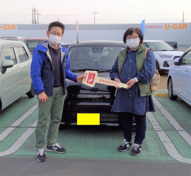 【車種】ミラトコット 【ボディカラー】ブラックマイカ【営業担当より】ご納車ありがとうございました😊たくさん乗ってお出かけしてください♬今後ともよろしくお願いいたします!