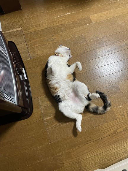 我が家の末っ子。ほぼ毎日、一番暖かいストーブの前を占領...