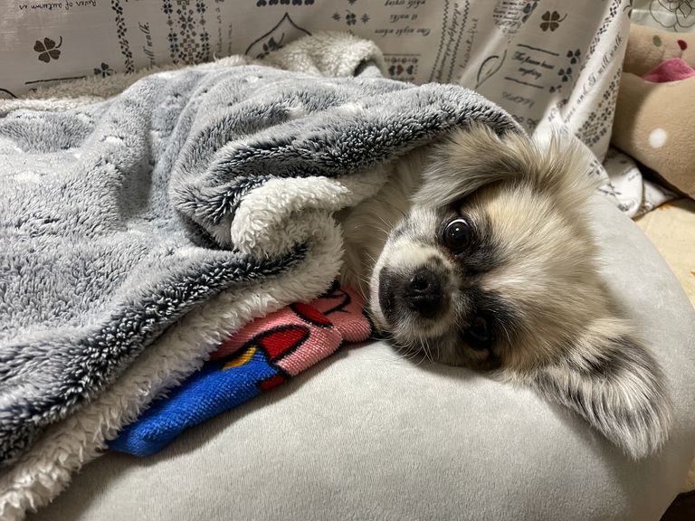 毛布をかけてもらいうっとりの顔です(*'ω'*)