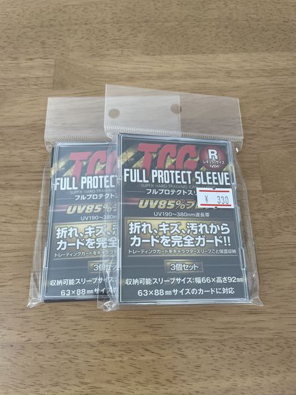 なので私は、長く綺麗に保管できるようスリーブは二重にし、日焼けしないようUVカットできるフルプロテクトに入れるのが基本。特別目立たせたいようなカードには、その上にアクリルフレームを用いて保管してます。