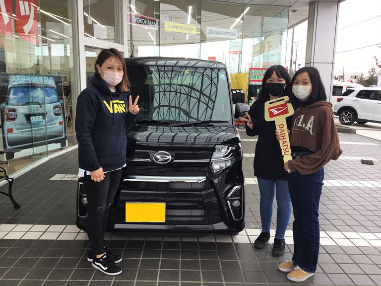 ご納車させていただき、ありがとうございました。かっこよいタントがとてもお似合いです♪これから点検も保険もしっかりフォローさせていただきますので、末永いお付き合いをよろしくお願いいたします☺タントでたくさんお出かけして楽しい思い出を作ってくださいね!