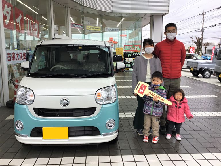 ご納車させていただき、ありがとうございました。水色のキャンバスをお子さまにも気に入っていただけて嬉しいです!これからご家族の皆様で楽しい思い出を作ってくださいね☺動物園楽しみですね♪これからも末永いお付き合いをよろしくお願いいたします。