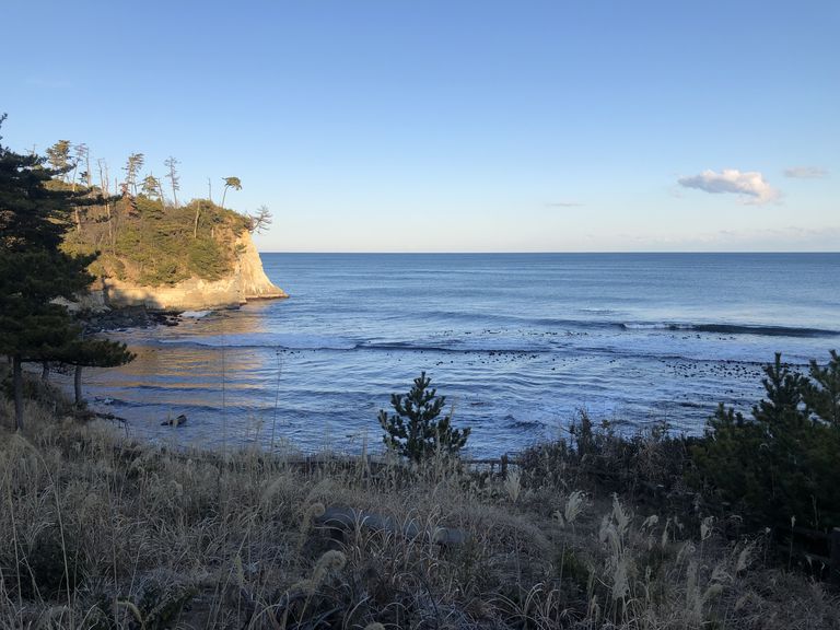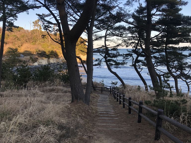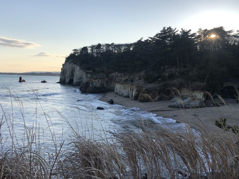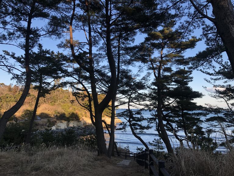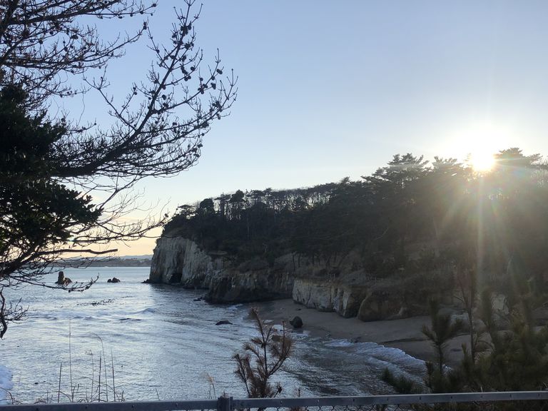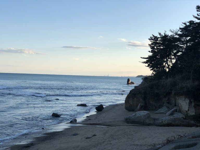 浜辺と波に削られた岩肌と松の木を眺めていたら、あまりの絶景に、ここは本当に茨城県かどうなのか不安になってきた。