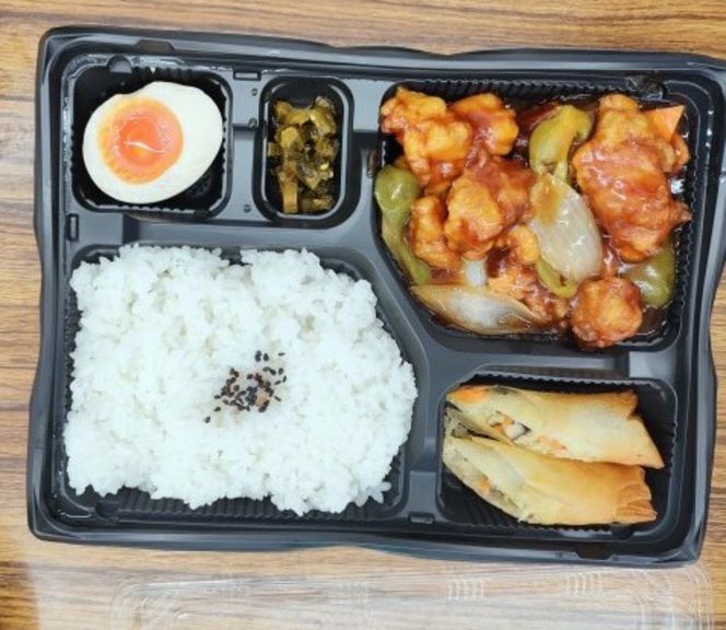 エビチリ弁当、おかず3品弁当、あんかけ炒飯、