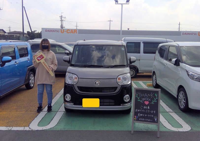 【車種】ムーヴキャンバス 【ボディカラー】ツートン(グレー/ブラック) 【この車で一番最初に行きたい場所は?】ディズニー🏰 【営業担当 鈴木より】本日は、ご納車させていただきありがとうございます。ムーヴキャンバスで、たくさんの楽しい想い出を増やしていってください♬ディズニーに行った楽しいお話を聞かせてもらえるのを、楽しみにしています(*^-^*)これからのカーライフを、しっかりとサポートさせていただきます!どうぞ、末永くよろしくお願いいたします。